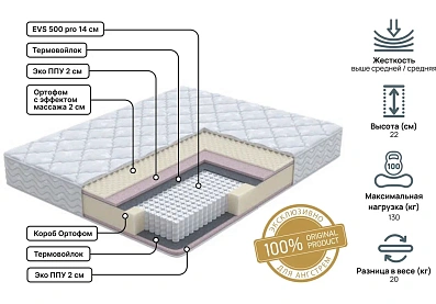 Матрас Anatomic Duo Pro 140х190 Выше среднего с пружинным блоком
