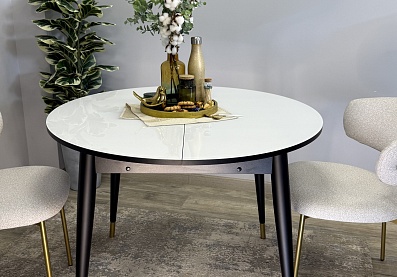 Стол обеденный Легро раздвижной черный/керамика мрамор белый Керамика