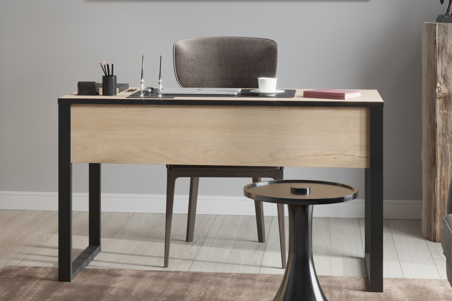– описание: стиль скандинавский, эко, бохо, фьюжн, лофт, современный, цвет дуб бунратти, черный, назначение для школьника, для работы, размер 75.2x120x62.3 см.