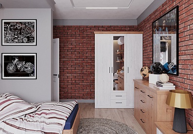 - Мебель выполнена в цвете «дуб бунратти», имитирующий натуральное дерево;