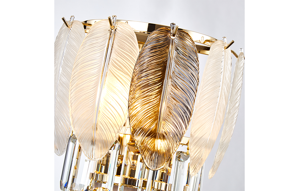Отображение природных мотивов в предметах интерьера всегда выглядит утонченно и изящно. Это можно сказать и о нашей коллекции Dolor. Каркас коллекции в цвете золота оформлен декоративными лепестками из белого и серого стекла, которые обрамляют хрустальный водопад кристаллов высшего качества прямоугольной формы.