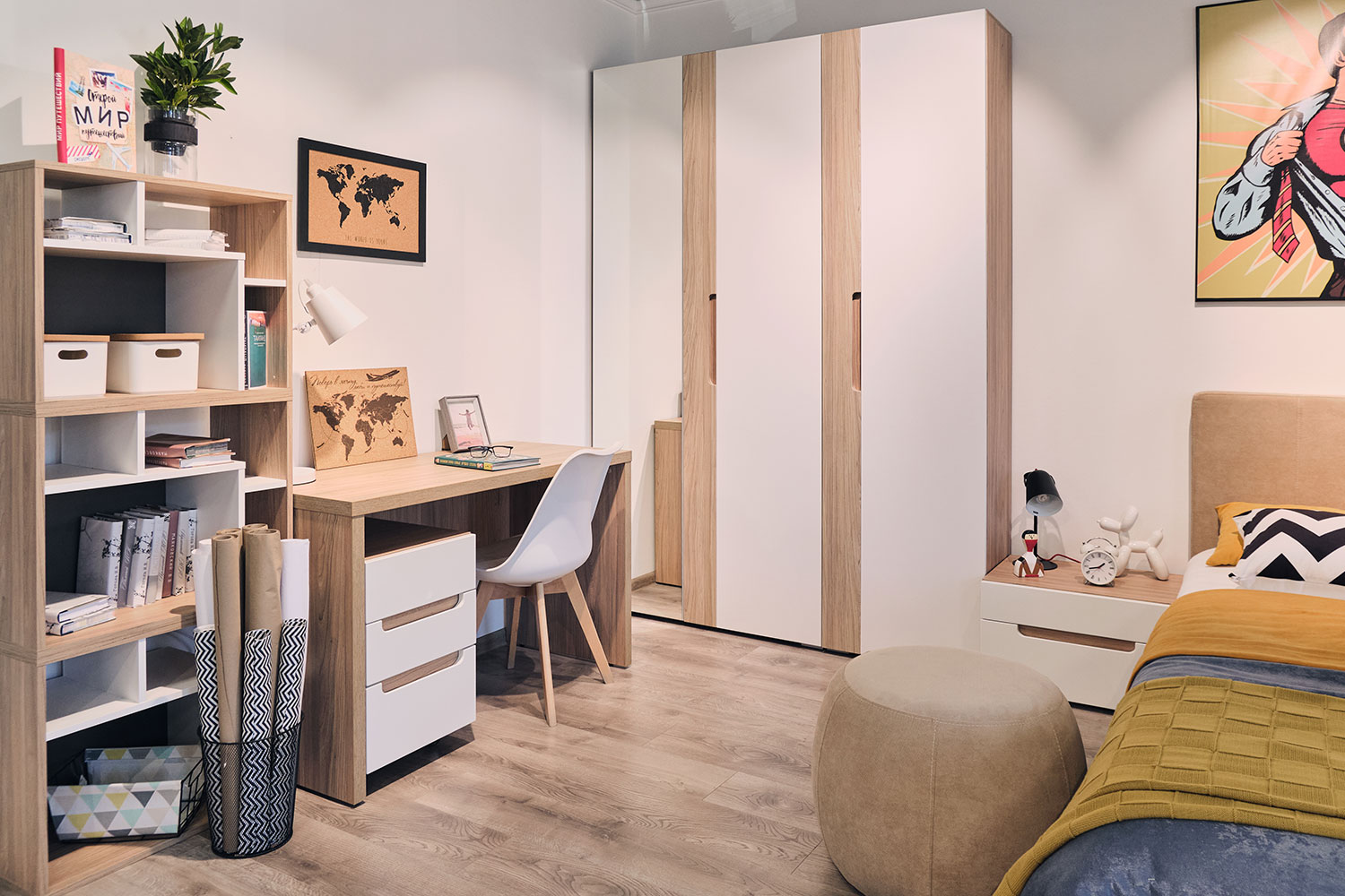 – описание: размер 60.9x40x46 см, стиль современный, минимализм, цвет швейцарский вяз, белый, назначение для детской.